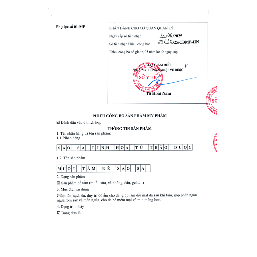 SỐ CBMP: 24630/25/CBMP-HN do Sở Y tế Thành phố Hà Nội công bố ngày 11/06/2025.
